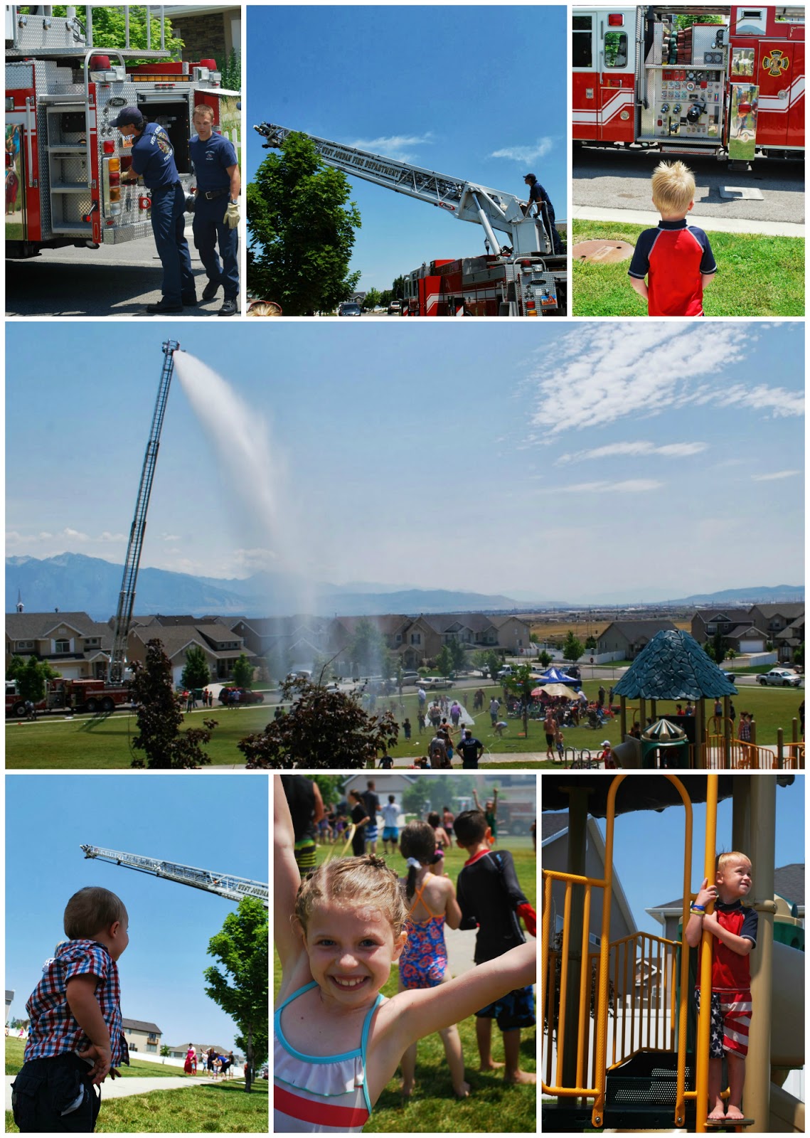 When we arrived in Utah, we baked our best cookie recipes, boxed them up, and delivered them to Station 55 in West Jordan. The kids presented them to the firefighters and thanked them for their service. I can't say the visit was entirely charitable, because just as they were enjoying the cookies and presence of our adorable children, we asked if they would be willing to stop by our 4th of July party and hose down the guests. They said yes!